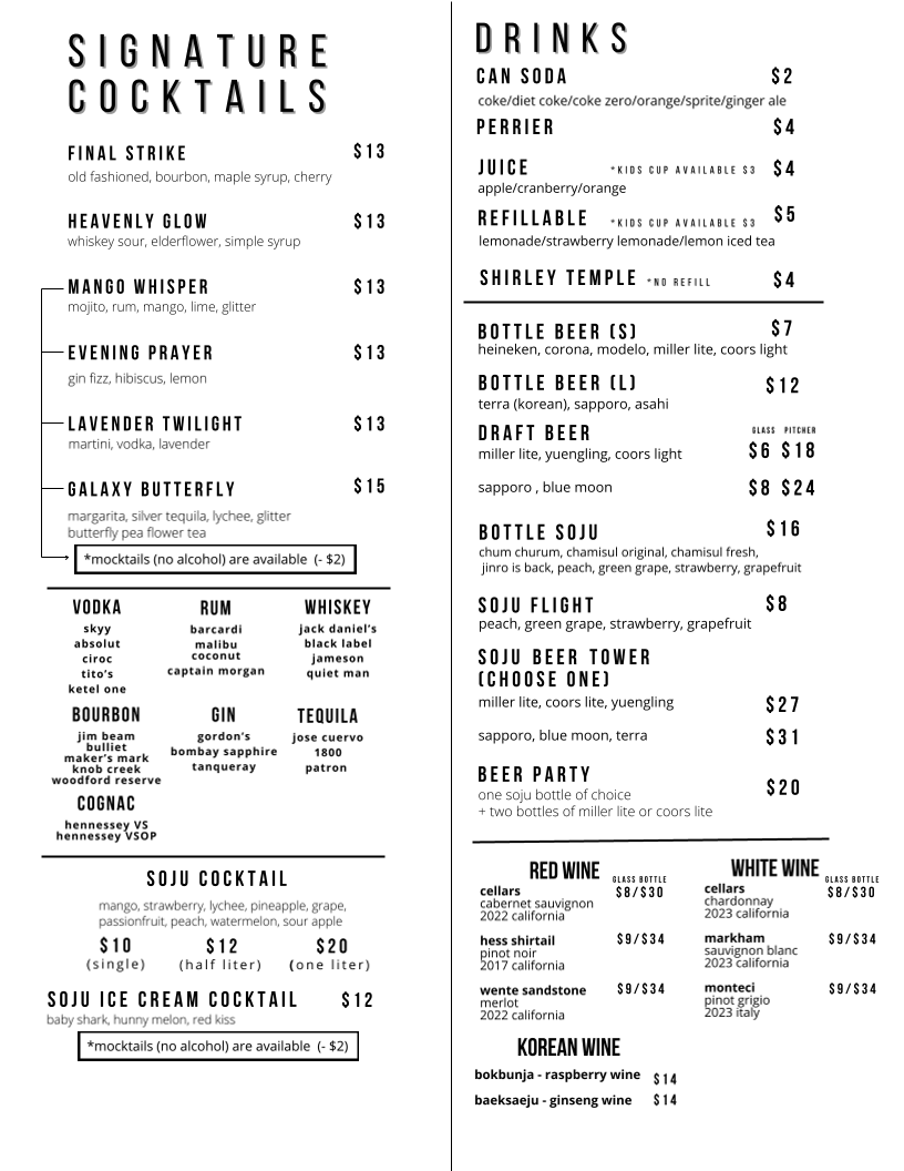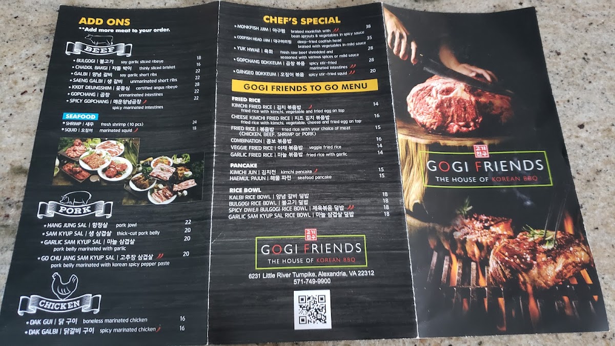 Gogi Friends offers a lively and inviting take on Korean cuisine, centered around flavorful barbecue, comforting classics, and shareable dishes. The menu features a wide range of options, from marinated meats grilled to perfection to rice bowls, noodles, and traditional sides, all complemented by refreshing beverages and classic Korean drinks. Signature items and chef-recommended specialties showcase bold marinades, balanced seasoning, and the interactive appeal of Korean dining.